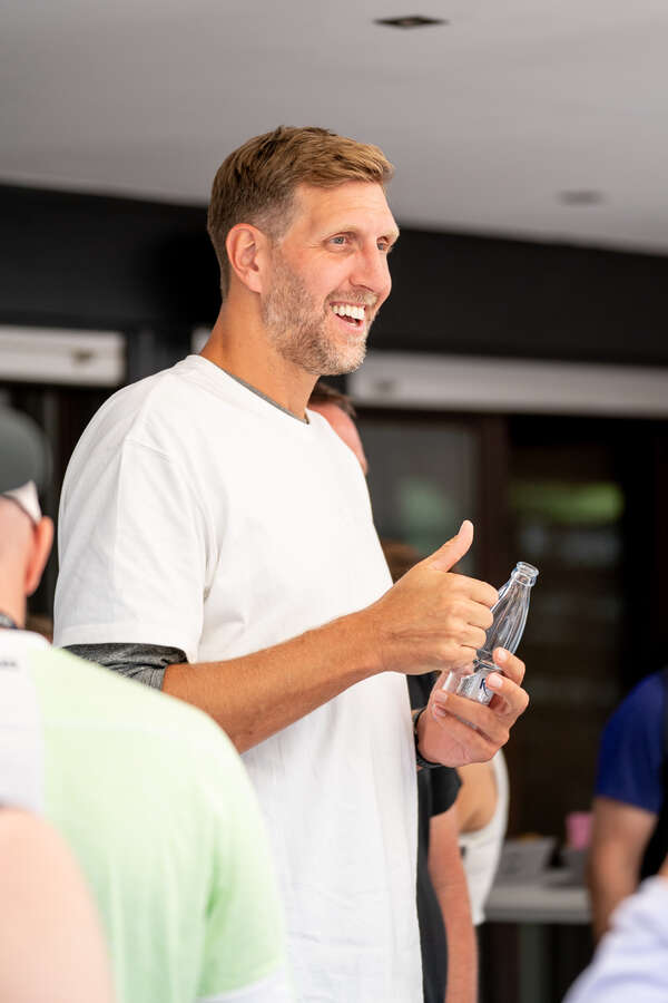 Um kurz nach 15 Uhr stieg er bestens gelaunt aus dem Auto und ließ die Zuschauer gehörig staunen - die deutsche Basketballlegende Dirk Nowitzki stattete den Bonn Open am ersten Turniertag einen Überraschungsbesuch ab. Kaum hatte er die Tür des Autos geschlossen, erfüllte er auf dem Weg zum Clubhaus bereits den ersten von zahlreichen Fotowünschen an diesem Tag.